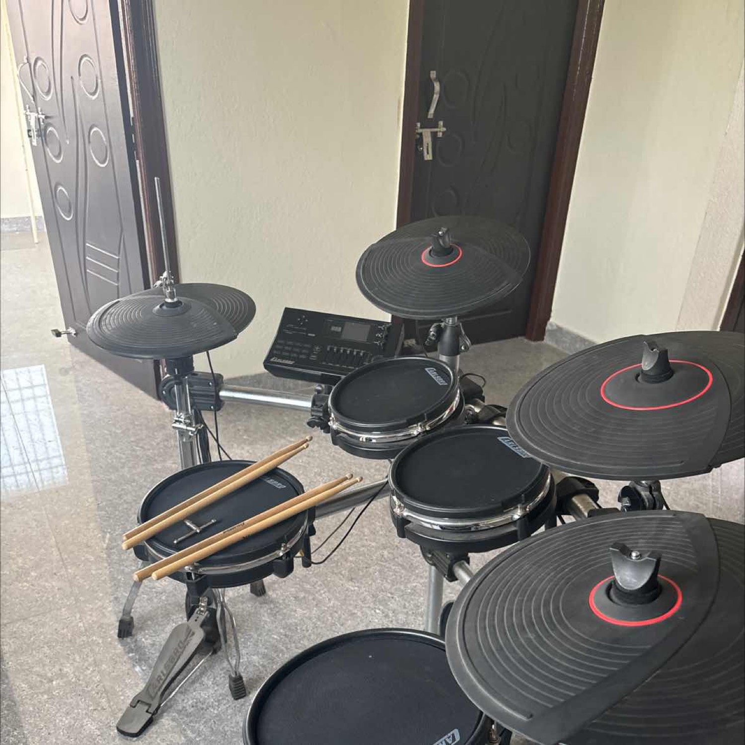 Full kit on sale. Same working condition like new one. No part missing. 2 Pair of drum Stick included with original drum key. Kit only used for home practice. Patna Bihar