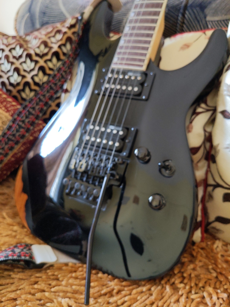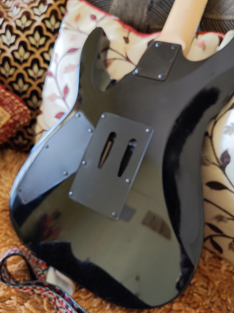 There is a small custom wood paint job , check picture for vinyl wood finish . The guitar is fitted with D addario NYXL 0.9 and is a shredders delight . Bengaluru Karnataka
