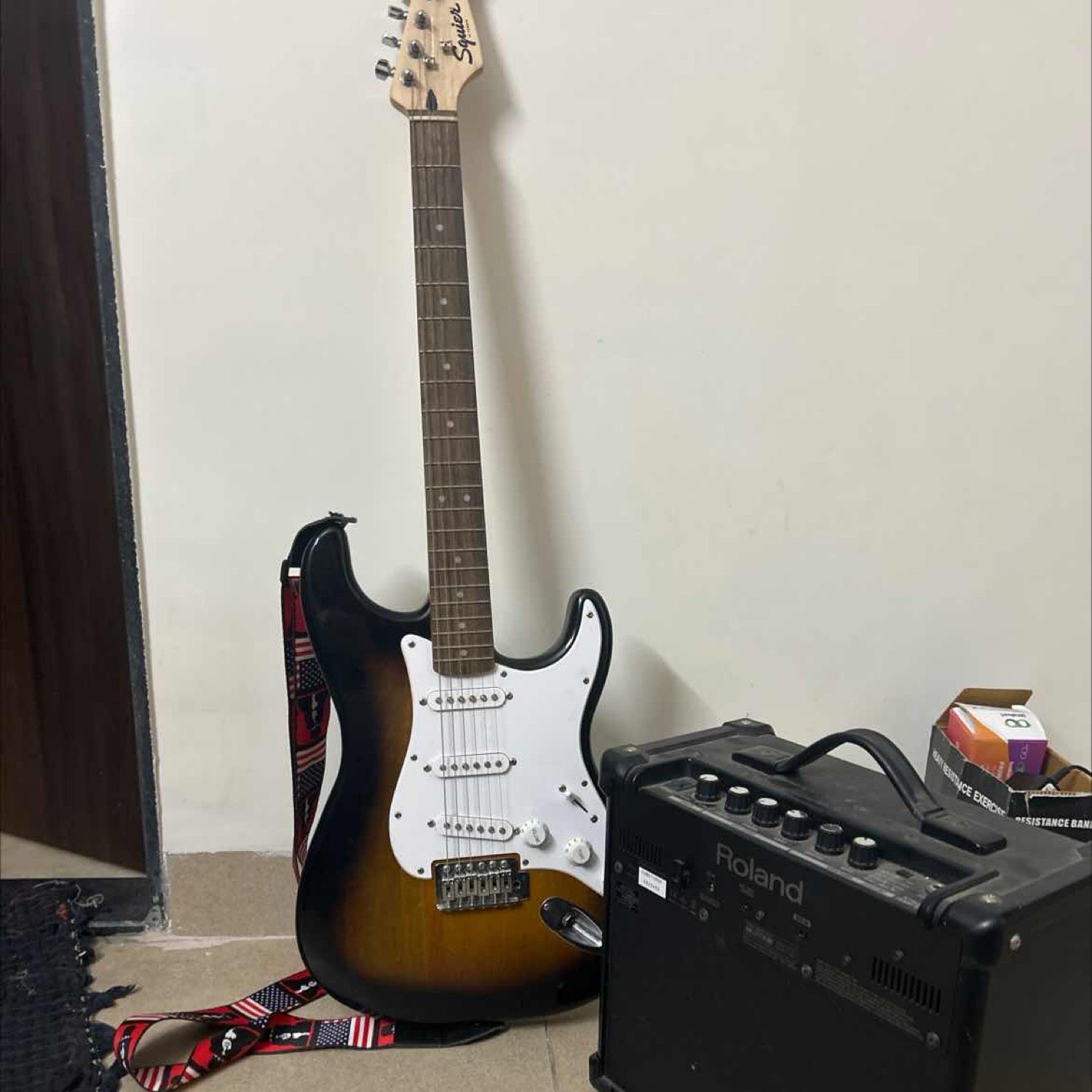 Brown OG strat Roland Cube amp with 3 inbuilt modes - clean, grunge and lead Ernie Ball Oroginal braided and coated guitar lead Guitar cover and amp box included Price negotiable Pune City East Maharashtra