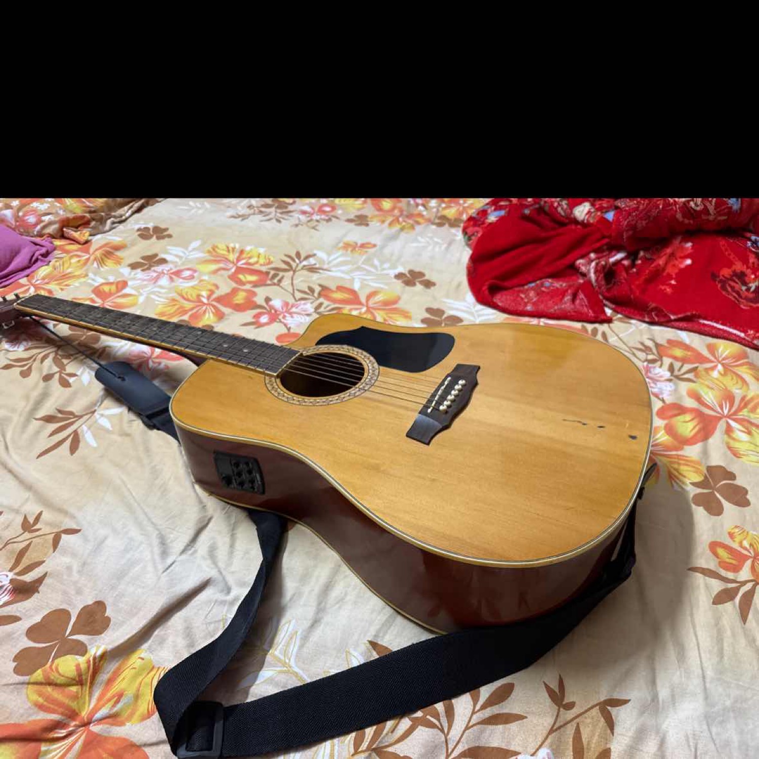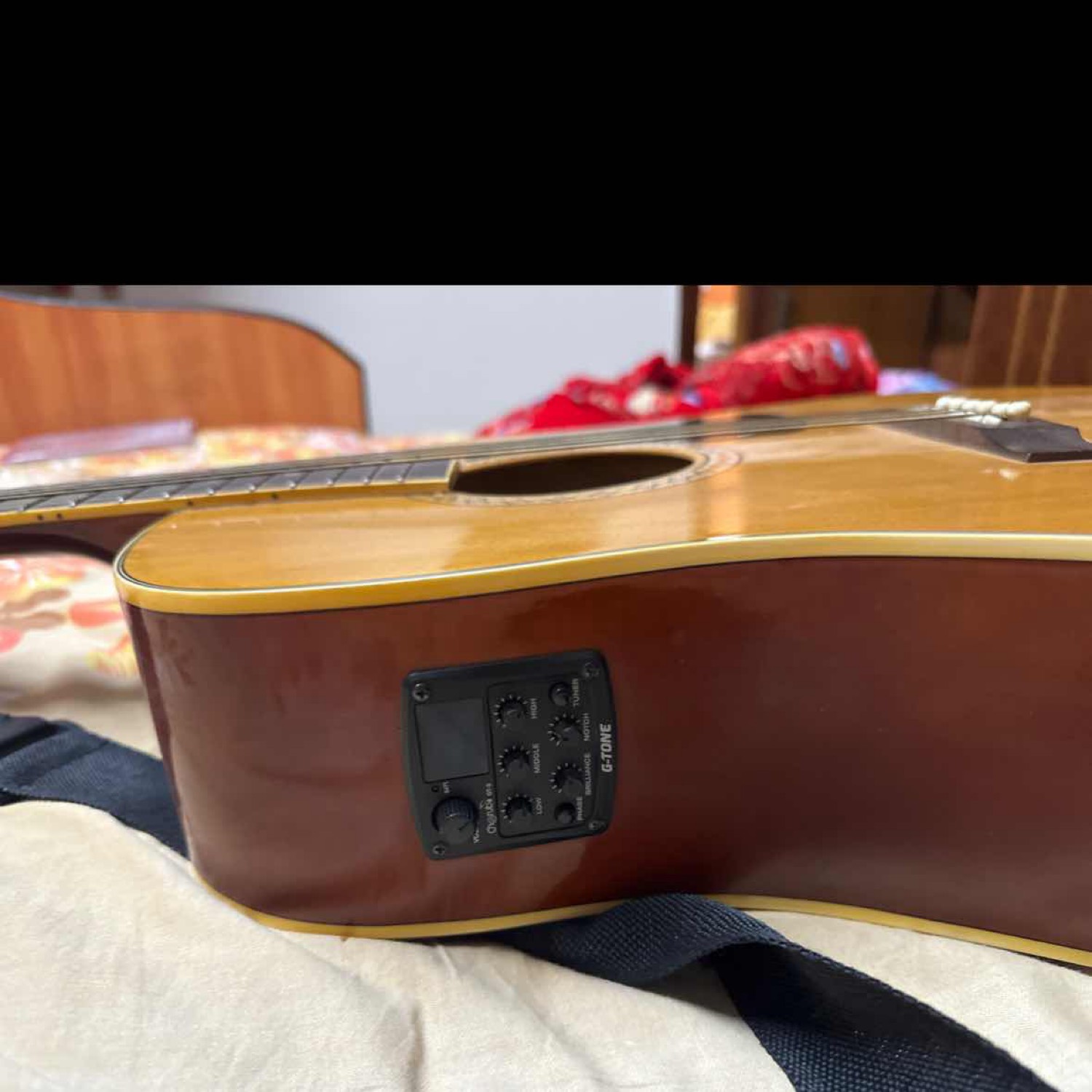 8 year old granada acoustic guitar in good condition. This guitar can be connected to amplifiers and has an inbuilt tuner which is operated on a battery. Also has inbuilt equalizer. Along with this guitar, I am also offering the guitar belt, bag and amplifier cable. Will also give a couple of picks Mumbai Maharashtra