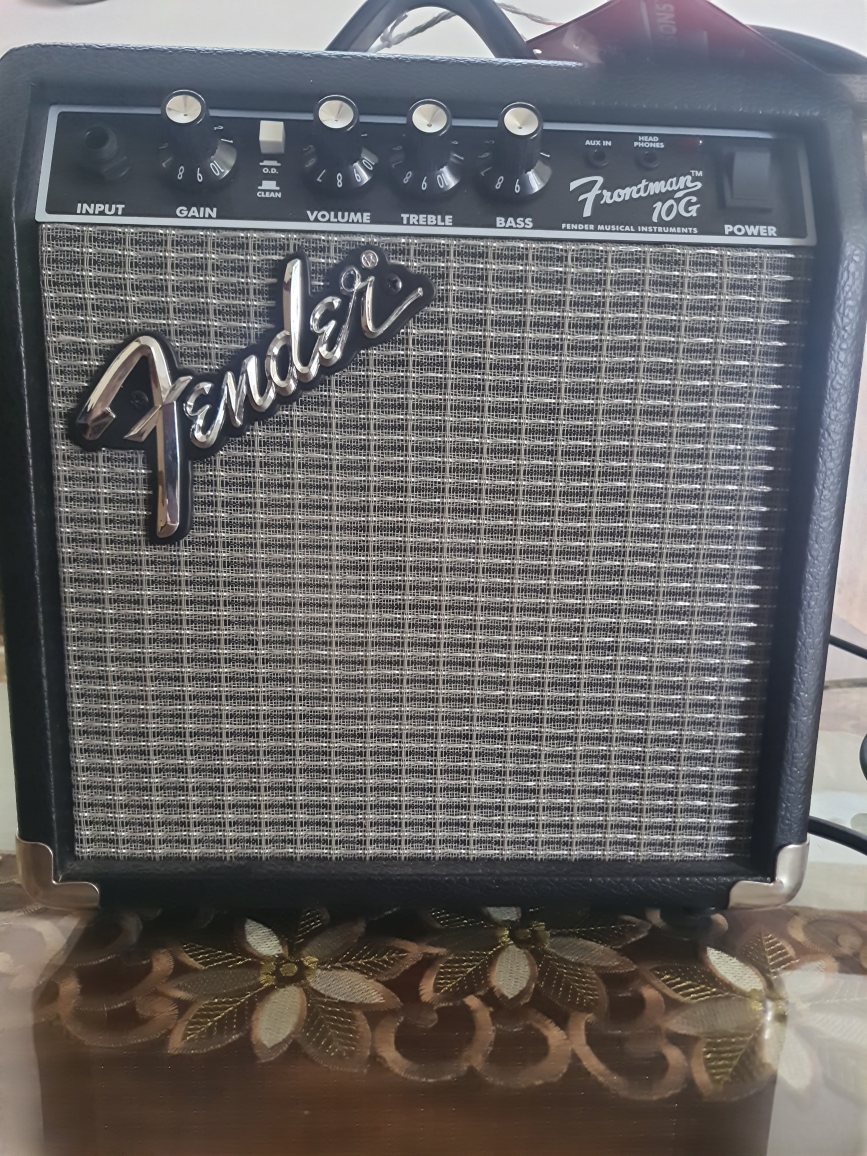 The Amp is just 3 months old. The Fender Frontman 10G is a fantastic little amplifier that packs a big punch in a compact size. This amp is perfect for beginners or those who need a portable practice amp. With a 10-watt output, it delivers a surprising amount of volume and tone for its size. One of the standout features of the Frontman 10G is its versatile control panel, which includes a clean/overdrive switch, volume, treble, bass, and a headphone output. This gives you a wide range of sound options to play with and experiment with different styles of music. The headphone output also makes it a great choice for late-night practice sessions. This amp is built to last, with Fender's renowned durability and reliability. Its compact size makes it easy to carry around, and it's perfect for jamming with friends or taking to a gig. The sleek black and silver design is also visually appealing, making it a great addition to any musician's setup. Overall, the Fender Frontman 10G is an excellent choice for anyone looking for a portable, versatile, and reliable practice amp. Whether you're a beginner or a seasoned pro, this amp will provide you with the perfect combination of sound and convenience. Don't miss out on this opportunity to own a piece of Fender history! Noida Uttar Pradesh