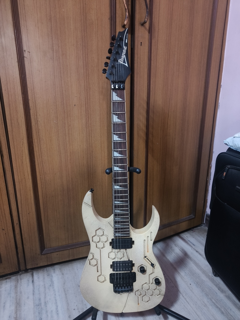 product has been used nicely for gigs and at home studio recordings, there are signs of use which is normal and doesn't affect the functionality of the guitar....it's got a beautiful neck and the pickups are massive Mumbai Maharashtra