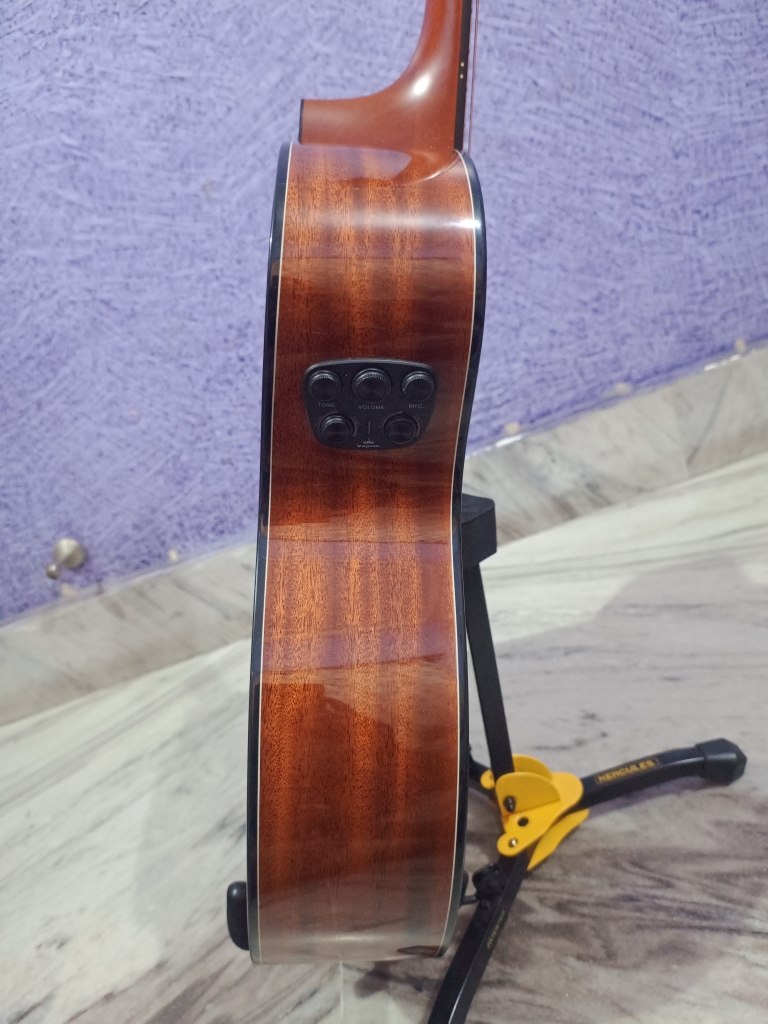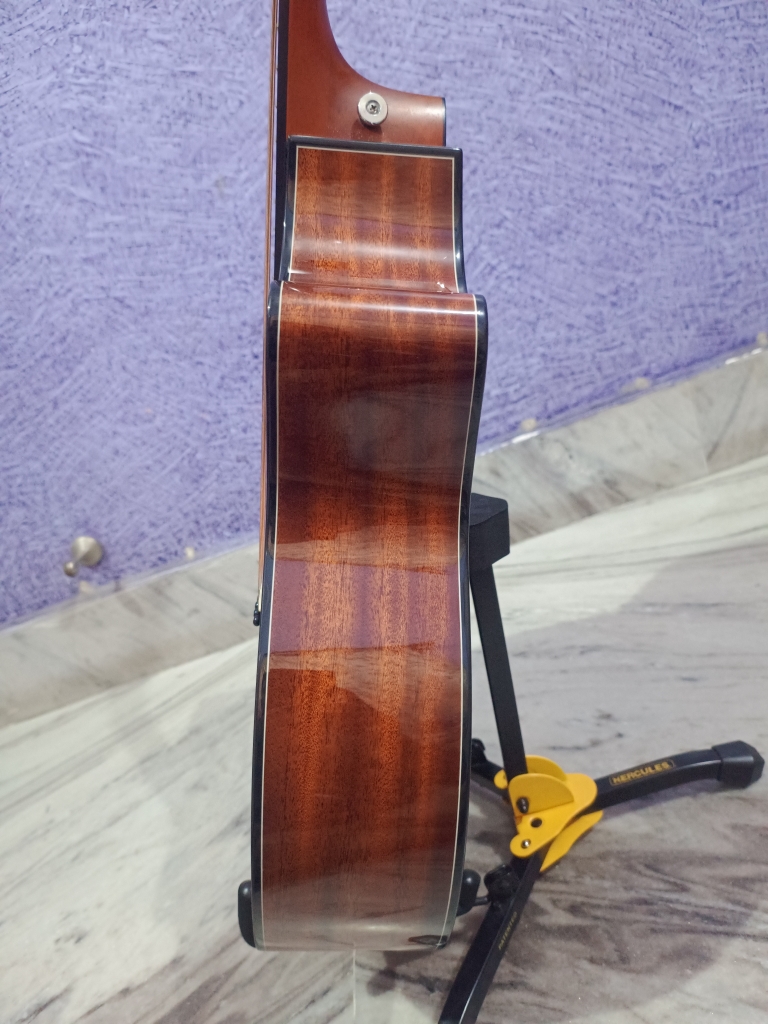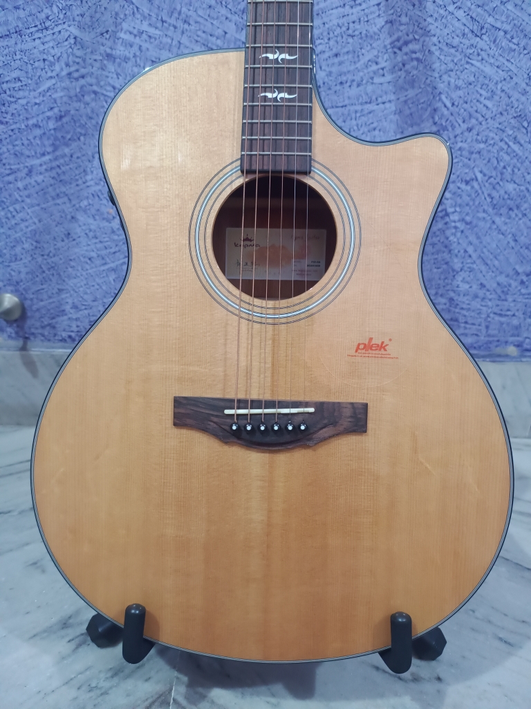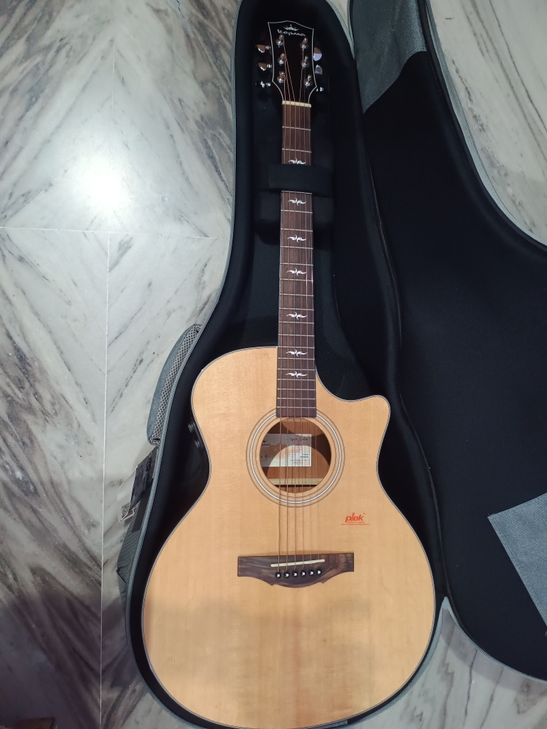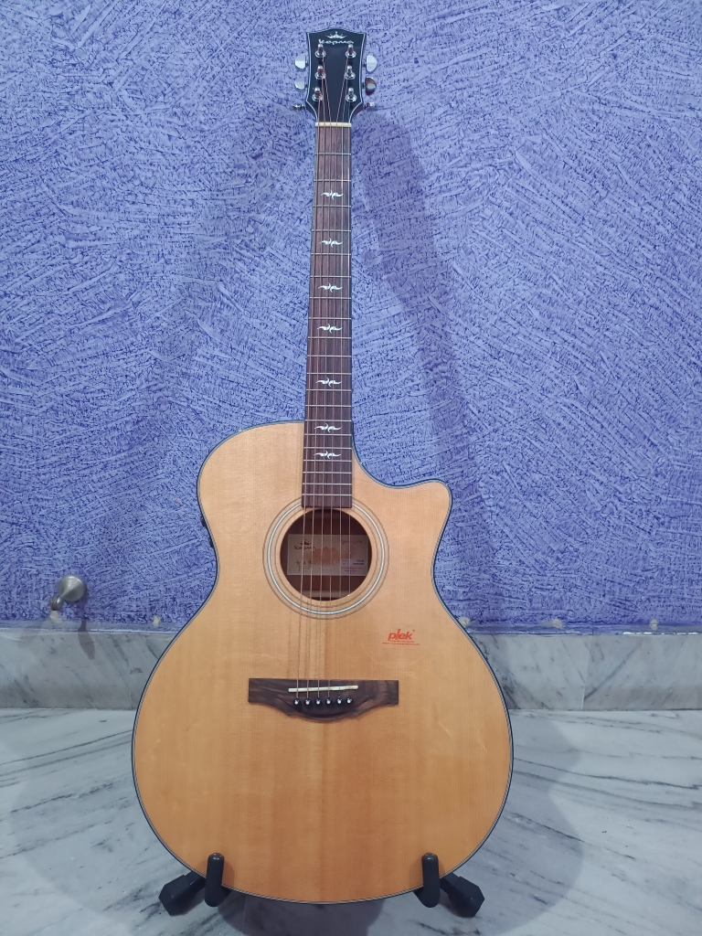 This is My Guitar Queen! This is also my most loveable and precious guitar! But my city’s extreme climate, humidity, and my inexperience of maintaining a solid top has impacted it. Currently has two issues 1) A slight belly bulge, though the bridge has no gap 2) The neck joint has moved a bit, and there is tiny gap in and around the neck Apart from these issues, this guitar is AS GOOD AS NEW and it can be repaired by any professional luthier! But again I don’t have professional luthier in my home town, and even if I get it repaired the same can happen in future. I am not a professional guitarist, so I don’t have the luxury to hold my guitar every day. This GUITAR is for a professional, who has experience to handle elite and premium range guitar. I just wish that I would have known before cause our instrument is not JUST an item on the wall, but an integral put of us! I have EXTRA set of almost everything starting from battery, charging cable, additional charger, and even special high end F1 tunning keys. If added, these will be more than 3k, which is included in the cost. You can get the full specification of this guitar from the Procraft. Also there are ample reviews of this guitar in YouTube. I got this guitar in May 2020, and the current market price of this guitar is 65k. So this guitar is just 4 years old! I am providing all the information so that you can you make an INFORMED DICISION (If Interested). If you have any further query, then please message me. Thank You! Procraft India Link: https://www.procraftindia.com/products/kepma-f1e-ga-grand-auditorium#desc-bookmark YouTube Reviews: https://www.youtube.com/watch?v=rQW-Z0i6fxU https://www.youtube.com/watch?v=kObAKDtjSYE https://www.youtube.com/watch?v=a4H1o_9xR74 Durgapur West Bengal
