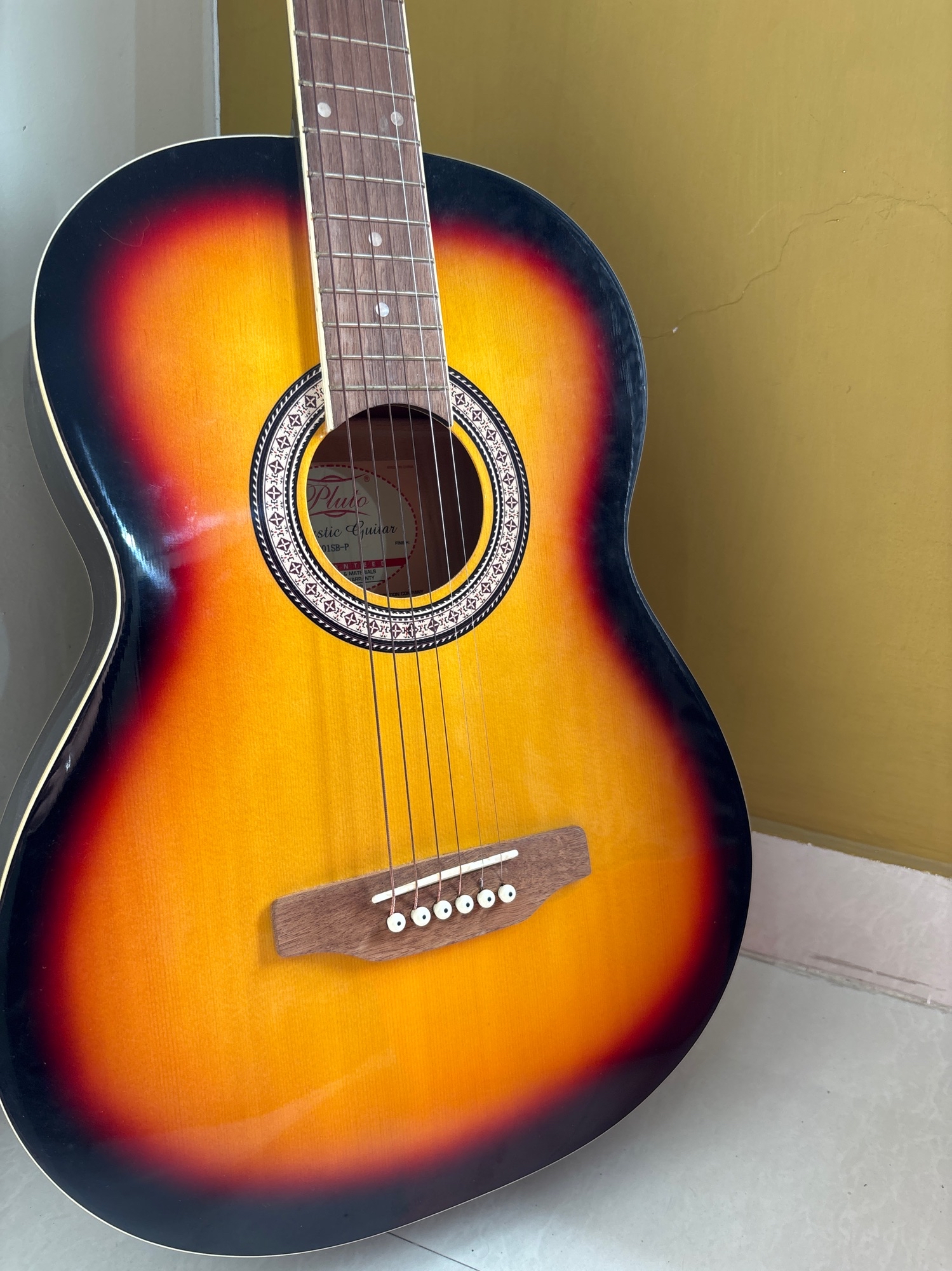 A stunning classic sunburst finish meets plug-and-play versatility. This electro-acoustic looks great on stage and sounds amazing plugged in or unplugged. Selling at a great price—why wait? Get the style and sound you need without breaking the bank! With a capo free!! Indore Not Specified