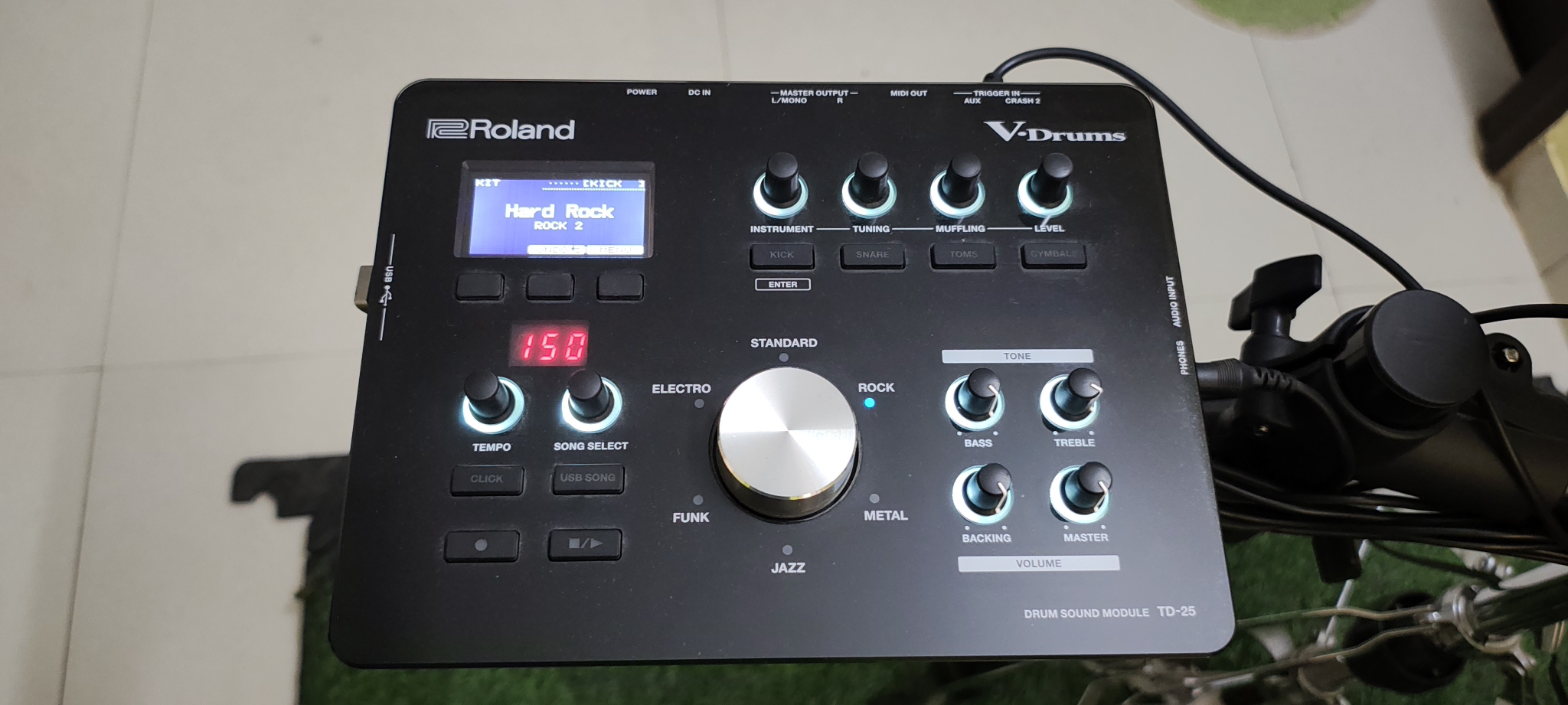 Rarely used 5 year old Roland TD25KVX Drumkit for sale. All the hardware is original Pearl Hardware. Original packing and bills are intact. This drum kit is entire package with all the accessories like Hand and Foot practice pads. Pearl drum throne and Hi Hat stand. Yamaha studio monitor headphones. Pearl demon drive foot pedals. Music Note stand. IRig recorder for studio recording. Highlight of this kit is KD140 Base Drum which is purchased seperately and looks and sounds phenomenal. Bengaluru Karnataka