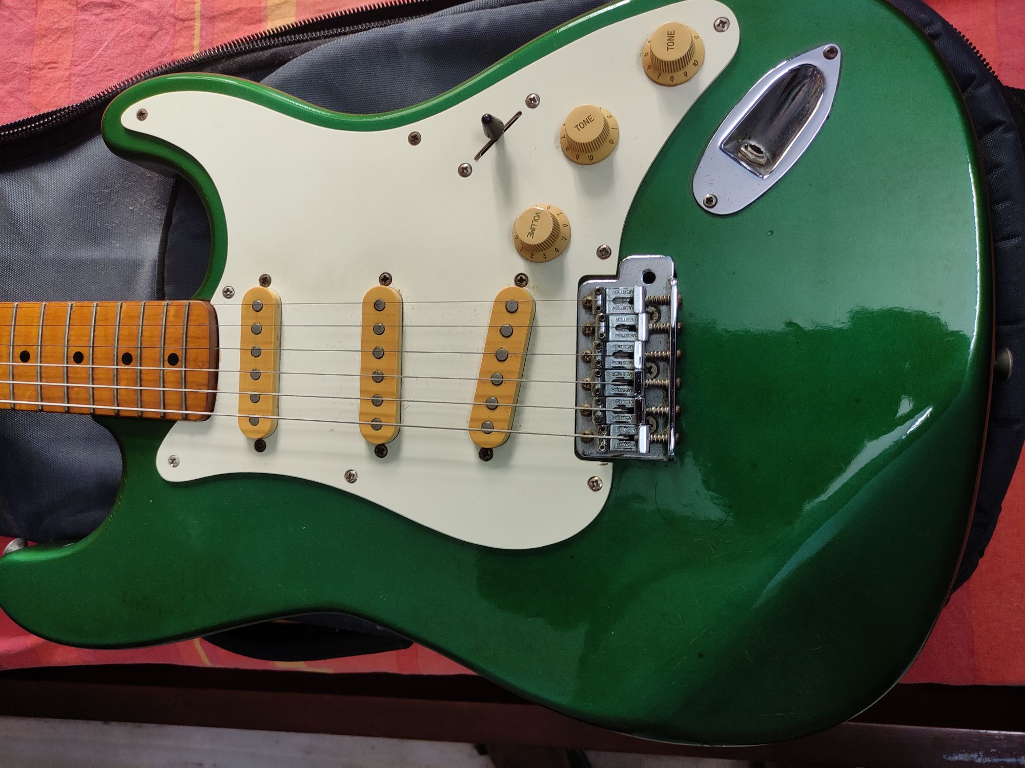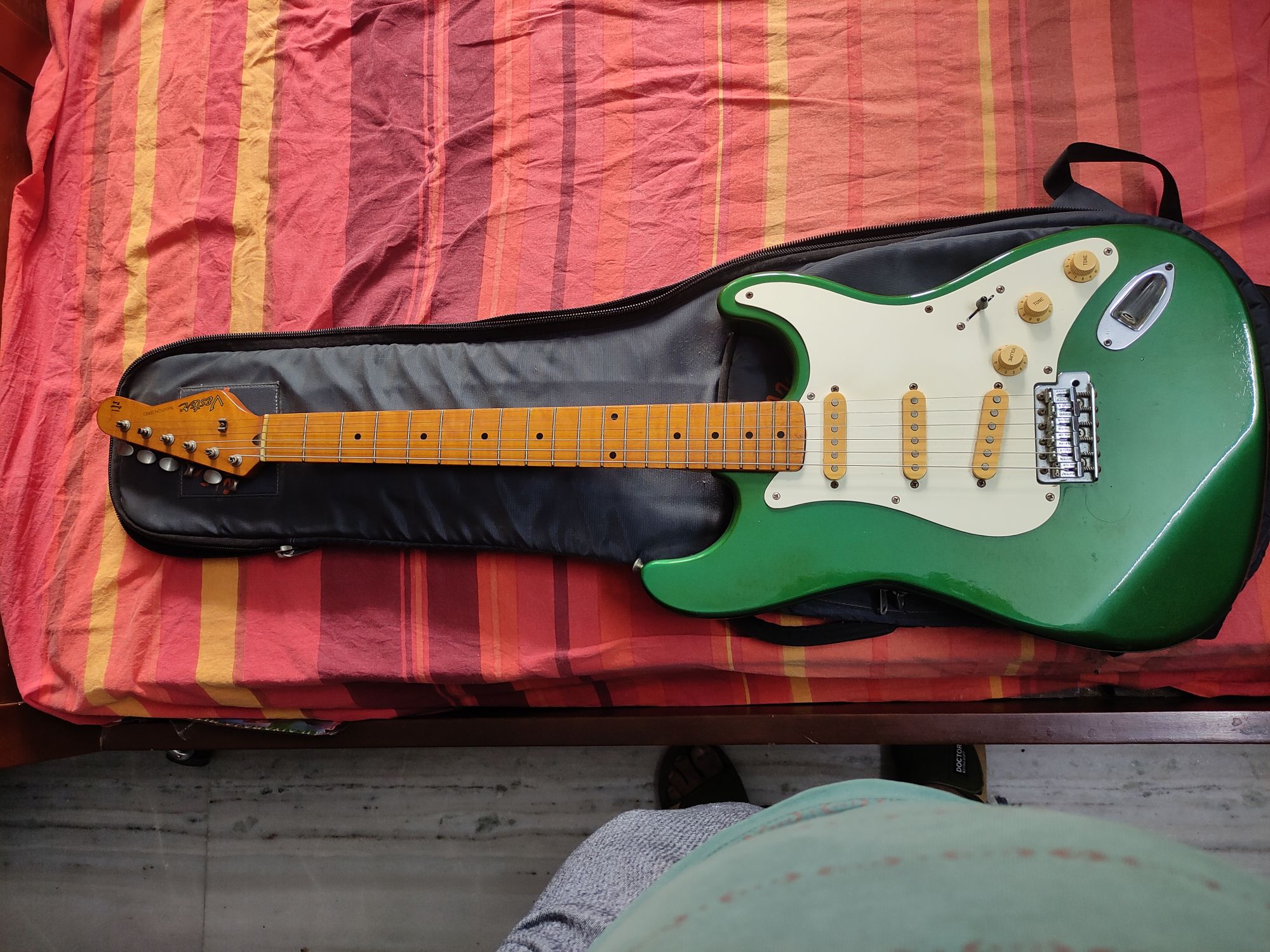 Brand: Vester (Made in Korea) [very rare] Year of make: late 80s/early 90s Color: Green Pickups: Stock single coil Five-way pickup configuration Great tuners, very lightweight and easy to play. Overall a great guitar. This guitar was brought to India from Singapore (the last owner told me). It's in great condition, recently serviced, and very rare to find. Great for rock, country and blues music. Letting it go because I want to buy a p90s guitar. Chennai Not Specified